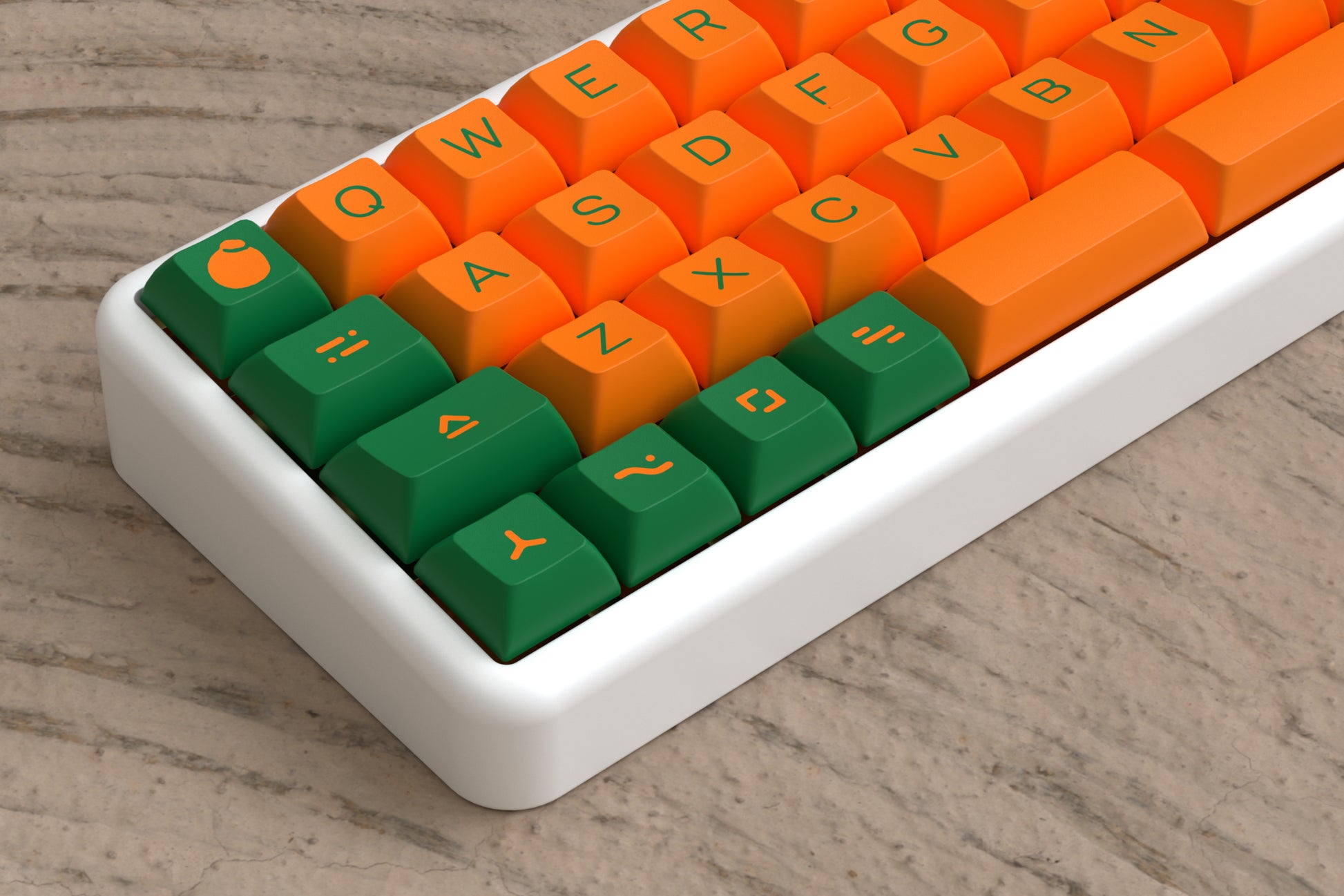 DSS Sumo is a citrus inspired keyset based on the gigantic Sumo oranges everyone knows and loves from their favorite grocery store! Featuring vibrant orange, with purple and green accets (representative of the stickers you see on the fruit) this set is sure to bring a vibrant aura to your setup!